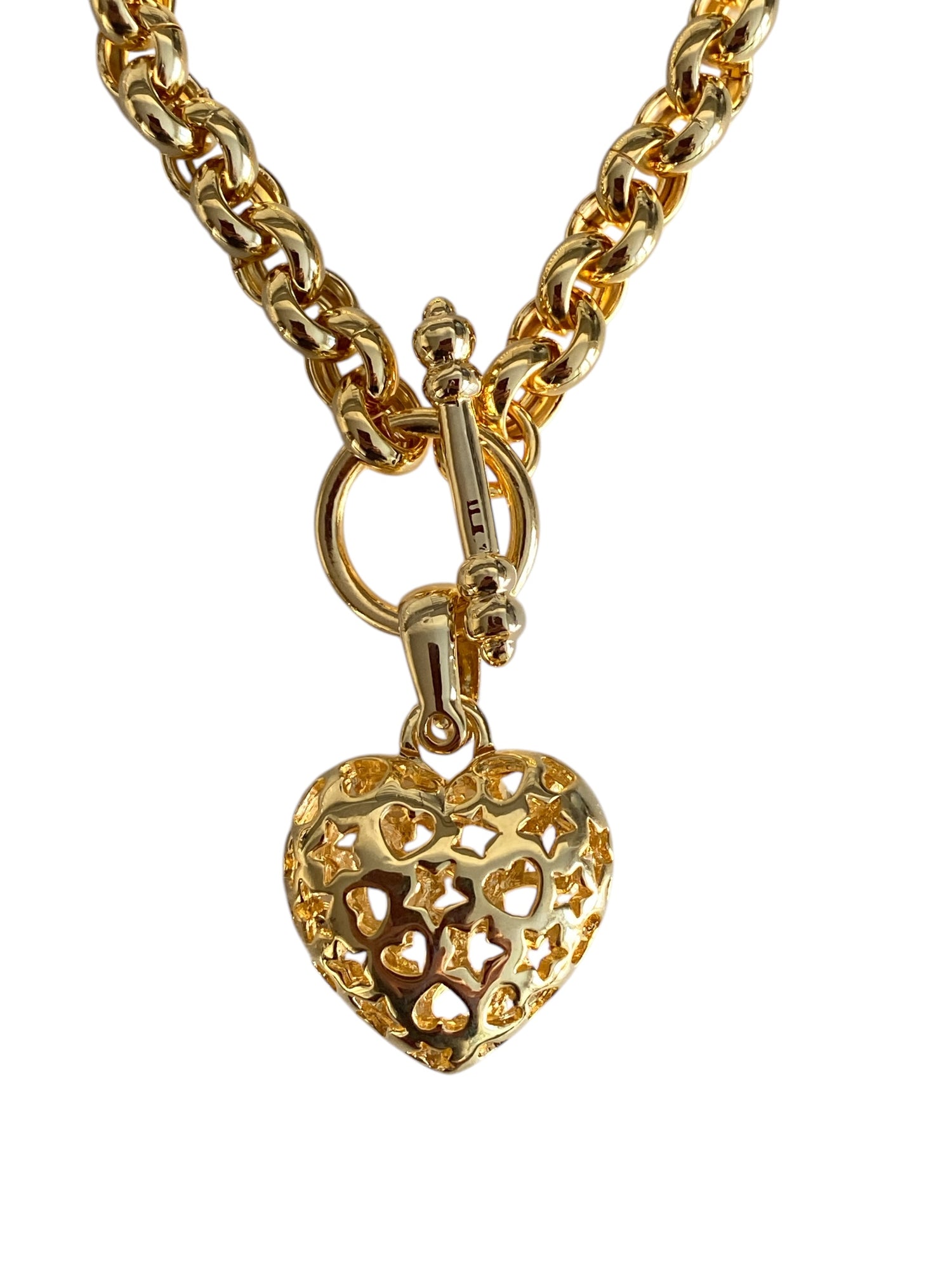 Sølvfarget vintage hjertebrosje med engler og perledetaljer