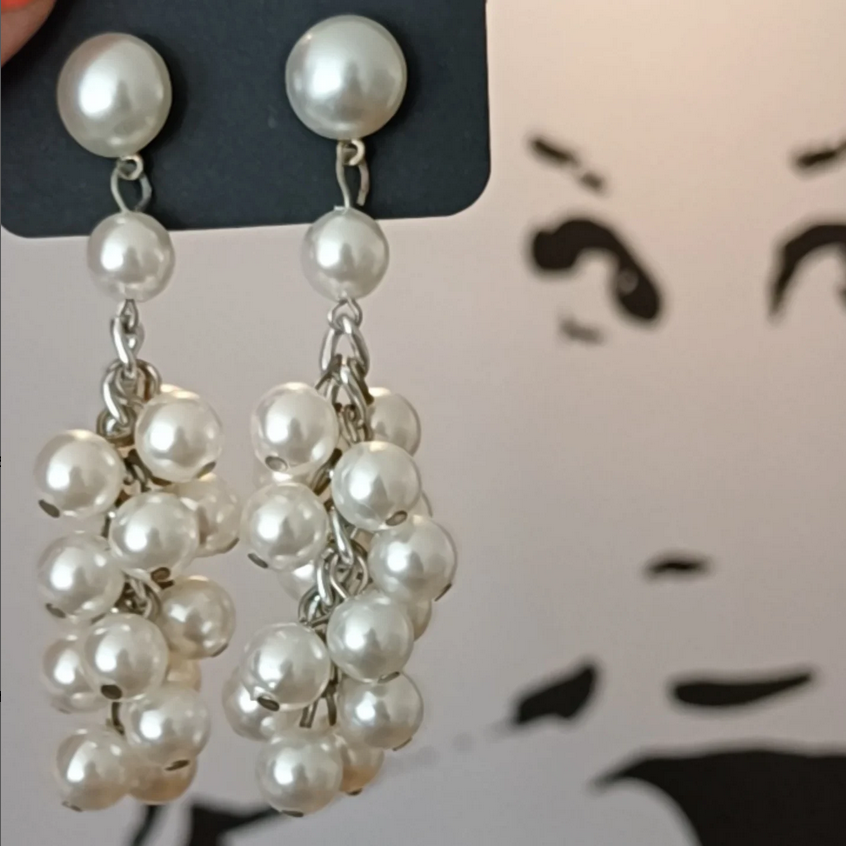 Stor sølvfarget brosje med dråpeformet perledetalj