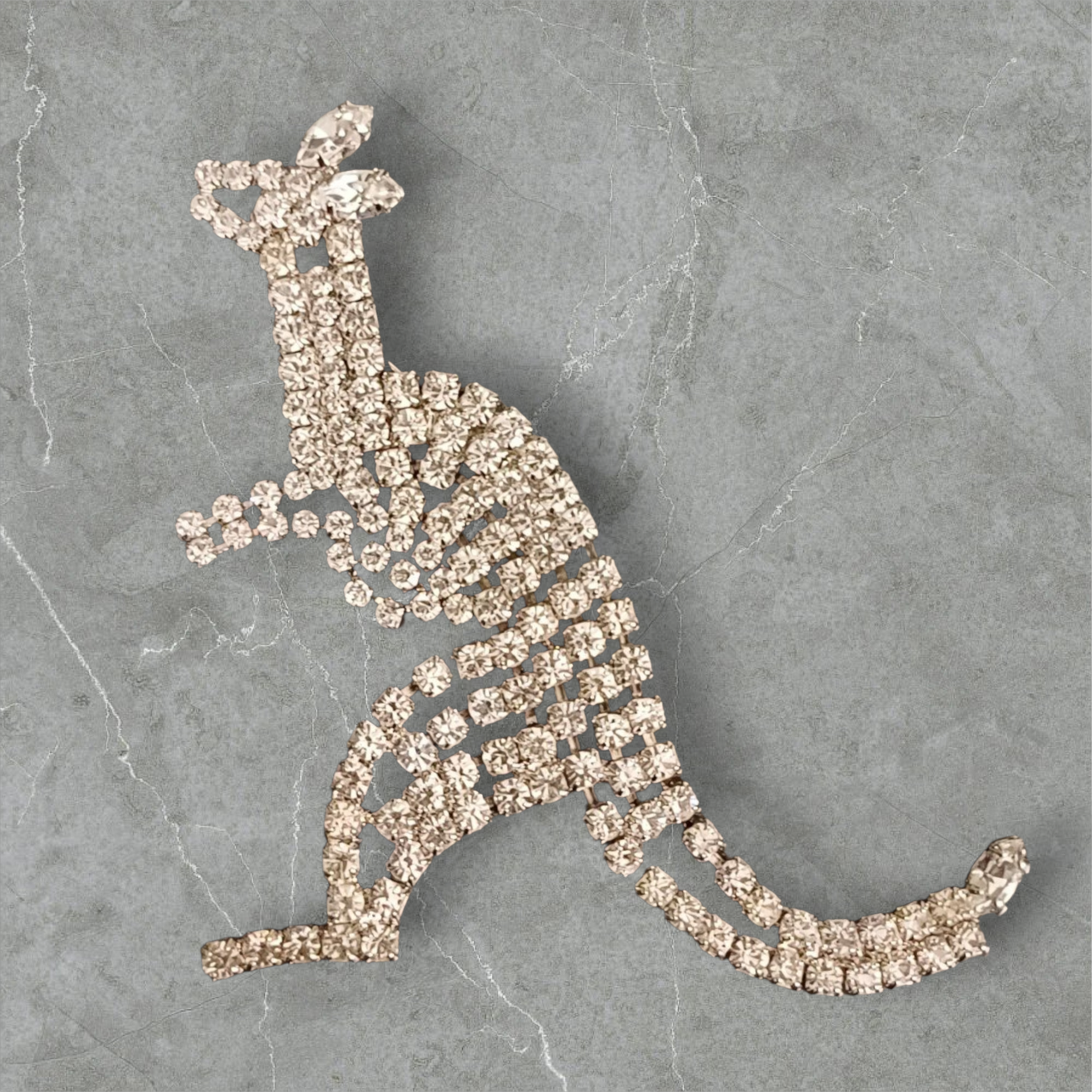 En unik og sjarmerende brosje formet som en kenguru, dekket av glitrende klare strass-stener. Denne statement-brosjen fanger oppmerksomheten med sitt lekne design og sitt stilige, skinnende uttrykk. Perfekt for deg som ønsker å skille deg ut og tilføre antrekket et snev av eleganse og eventyrlyst.