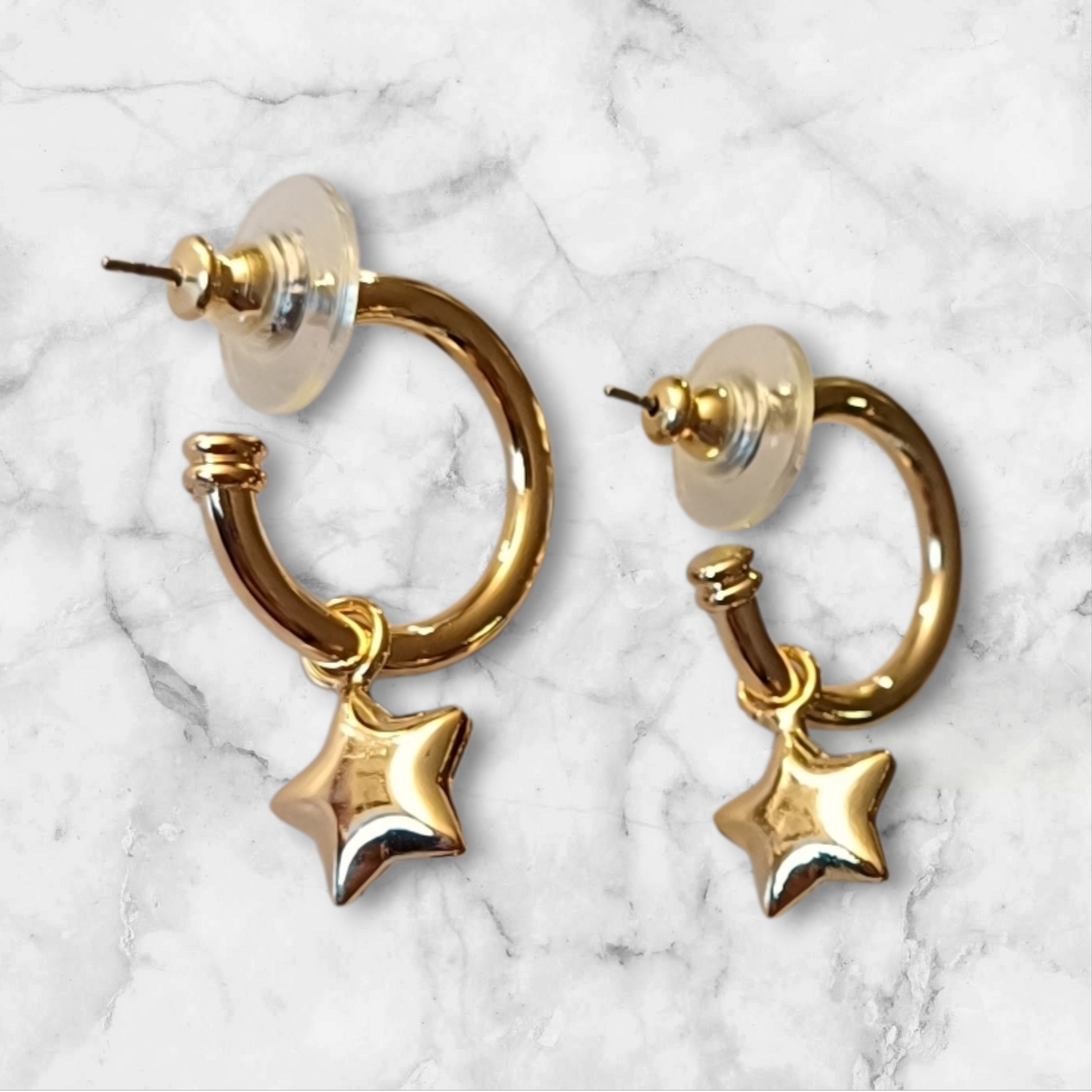 Stjerneanhenget kan tas av, slik at du også kan bruke dem som enkle gullhoops uten anheng.