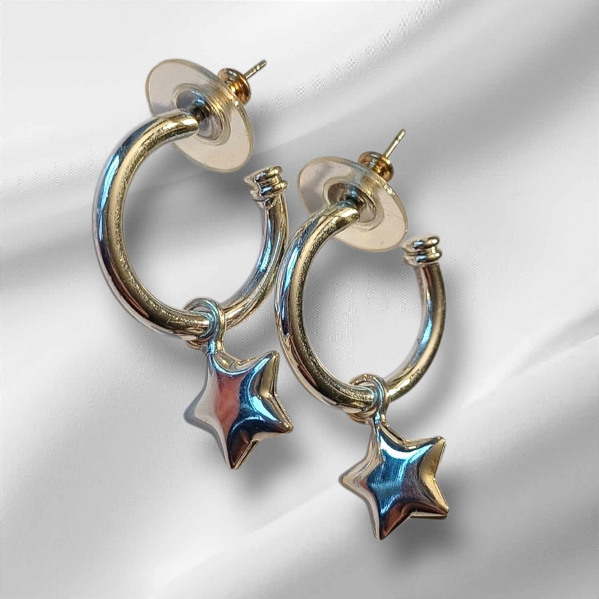 Øredobber i sølvfarget metall med stjerneanheng